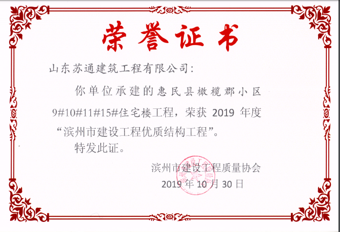 山東蘇通建筑工程有限公司,創(chuàng)建于2009年8月。目前擁有房屋建筑工程施工總承包壹級、市政公用工程施工總承包叁級、水利水電工程施工總承包叁級資質,同時還具有建筑裝修裝飾工程專業(yè)承包貳級、消防設施工程專業(yè)承包貳級、鋼結構工程專業(yè)承包叁級、建筑機電安裝工程專業(yè)承包叁級等專業(yè)承包資質。 公司總部坐落于山東省濱州市濱城區黃河十二路877號,現有辦公面積約2000平方米,機構設黨支部工會辦公室、總經理辦公室、綜合辦公室、工程管理部、經營預算部、資產財務部、材料設備部、運行管理部、法律事務部等多個職能部門。公司管理體系已經通過了GB/T 19001及GB/T 50430質量管理體系、GB/T 24001環(huán)境管理體系(EMS)、GB/T 28001職業(yè)健康安全管理體系(OHSMS)等體系的認證。 公司承建完工了濱州市建大教師之家、建大清怡苑、香格里拉水岸綠城住宅小區、雙泰建大城、曲阜崇德公館住宅小區、北海新區御景藍灣住宅小區、沾化德榮國際華城住宅小區、惠民橄欖郡住宅小區等工程項目,目前在建工程項目有:濱州市頤高國際電子商務產業(yè)園住宅小區項目、濱州市東盛國際項目、高新區建大中央華府住宅小區項目、濱州市融匯新里程住宅小區項目、濱州市建大秦皇壹號住宅小區項目、濱州市森林花...